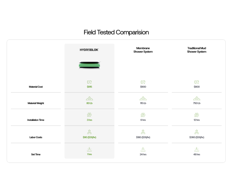 Traditional waterproofing is messy, slow, and leaves too much room for error. With Hydro-Blok, even apprentices can install a watertight, tile-ready system the same day.